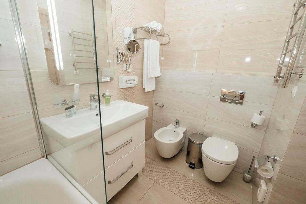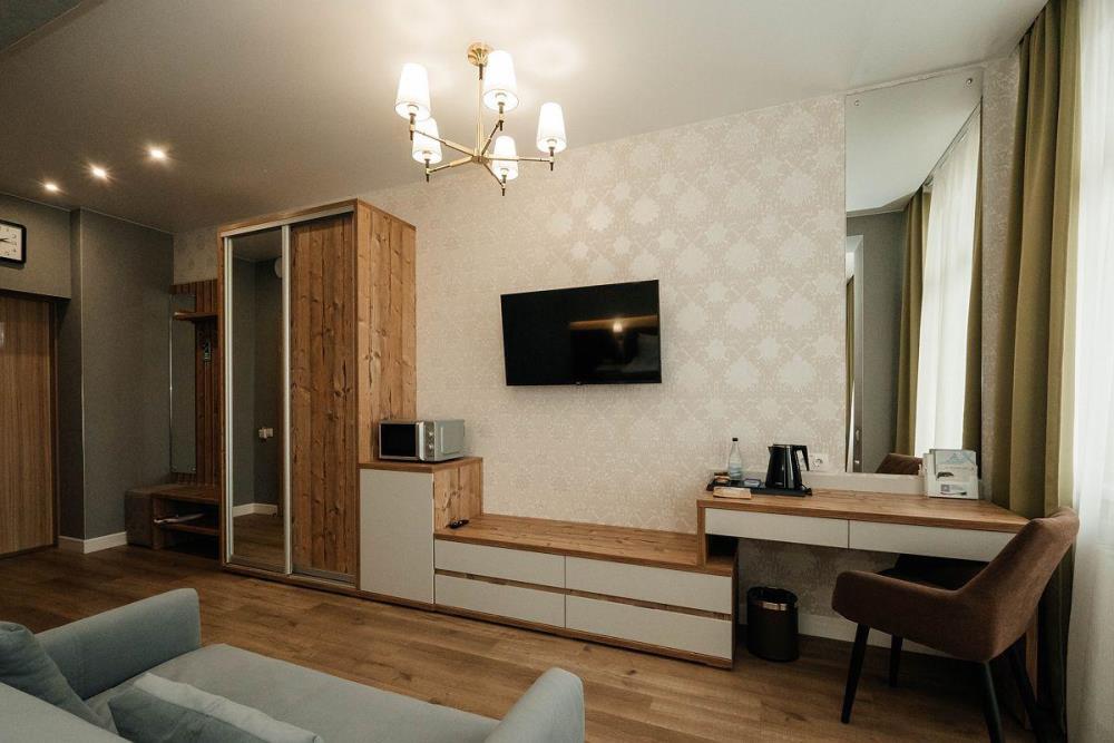 В номере: Диван-кровать, Бесплатный Wi-Fi, Ванная комната, Посуда, Прикроватная тумбочка, Стол, Стул/Стулья, Телевизор, Телефон, Туалетные принадлежности, Фен, Холодильник, Гладильные принадлежности, Шкаф, Кондиционер/Сплит-система, Кровать двуспальная, Набор одноразовой косметики, Тапочки, Халат, Душ, Чайная станция