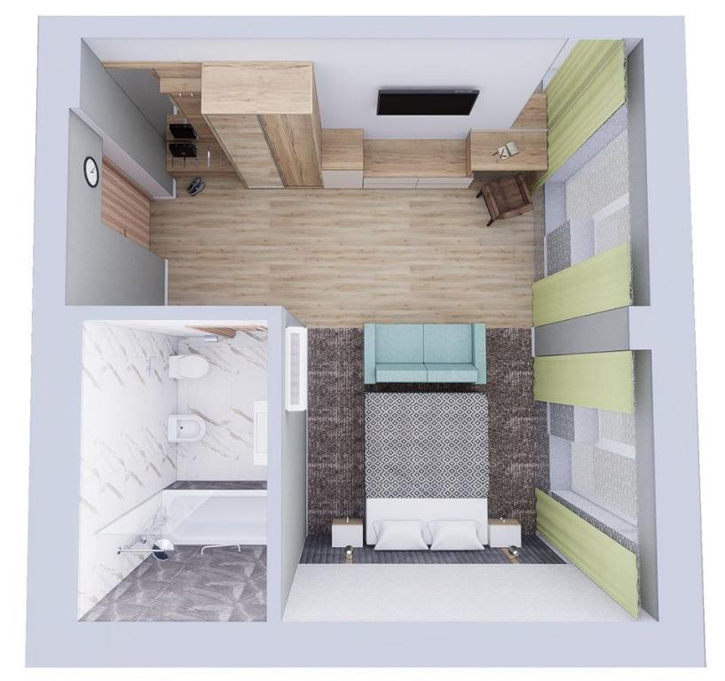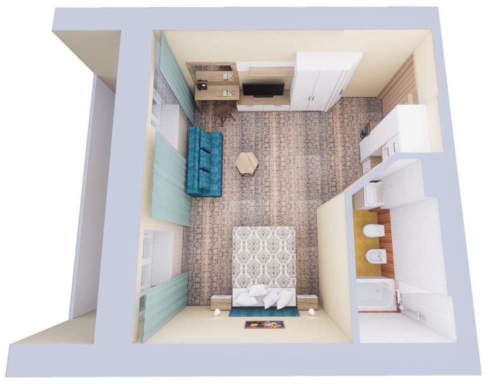 Однокомнатный просторный номер-студия с балконом, оснащенный всем необходимым для комфортного отдыха. Подходит для размещения до четырех гостей. Номер располагает двуспальной кроватью (160см), для дополнительных мест предусмотрен раскладной диван.