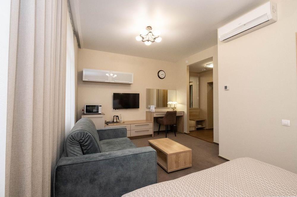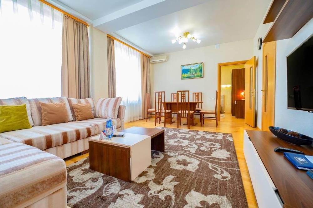 В номере: Балкон/терраса, Бесплатный Wi-Fi, Ванная комната, Диван-кровать, Душ, Журнальный столик, Зеркало, Кондиционер/Сплит-система, Кровать двуспальная, Набор одноразовой косметики, Посуда, Прикроватная тумбочка, Стол, Стул/Стулья, Тапочки, Телевизор, Телефон, Туалетные принадлежности, Фен, Холодильник, Чайник, Шкаф
