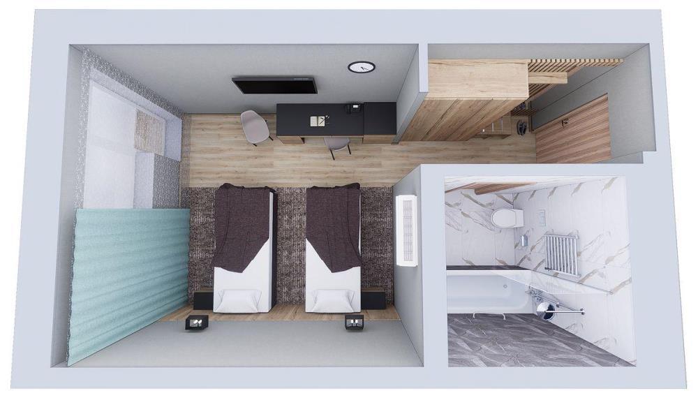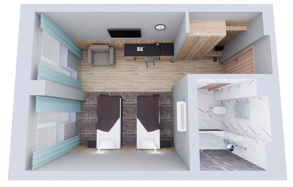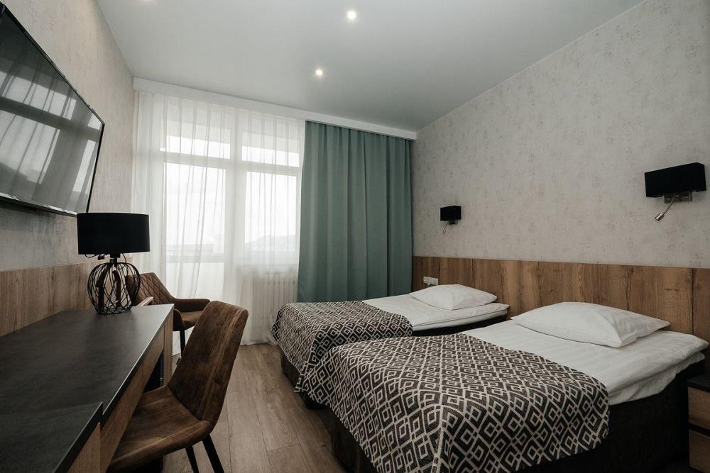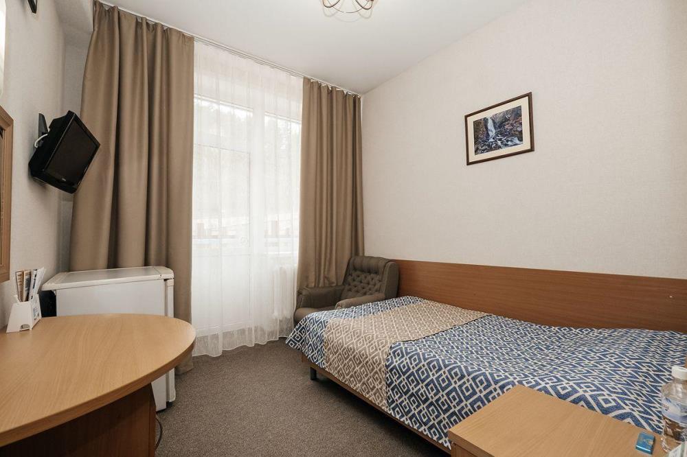 Однокомнатный номер с балконом, оснащенный всем необходимым для комфортного отдыха. В номере две односпальные кровати-трансформеры (80-90 см), имеющие возможность объединения в двуспальную кровать (160-180 см). Предусмотрен для размещения двух гостей.