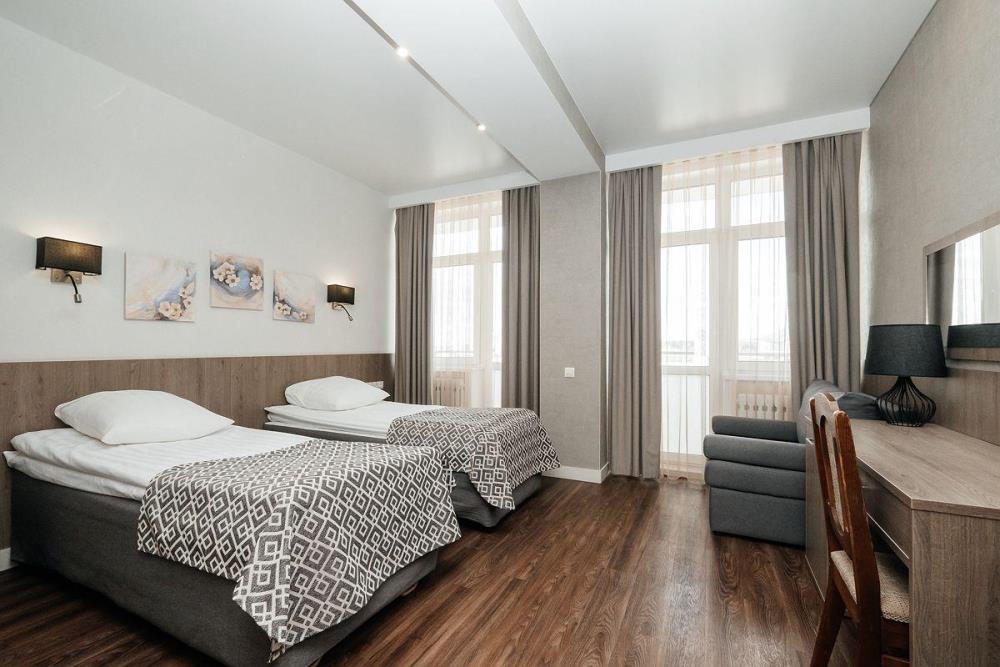 Однокомнатный номер с балконом, оснащенный всем необходимым для комфортного отдыха. В номере две односпальные кровати-трансформеры (90 см), имеющие возможность объединения в двуспальную кровать (180 см). Предусмотрен для размещения двух гостей, с возможностью размещения третьего на дополнительном месте (евро-раскладушка).