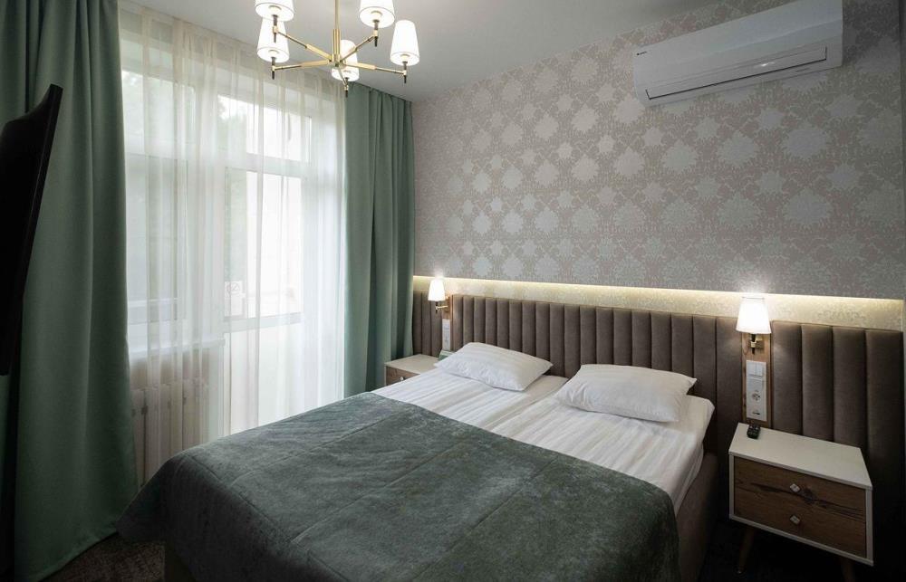 Двухкомнатный номер с балконом, оснащенный всем необходимым для комфортного отдыха. Подходит для размещения до четырех гостей. В номере двуспальная кровать (180см). Для дополнительных мест предусмотрен раскладной диван.