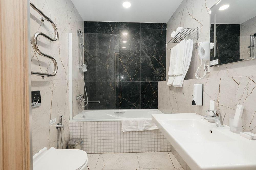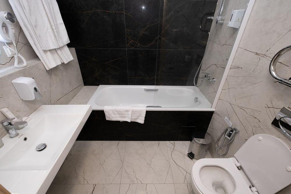В номере: Балкон/терраса, Бесплатный Wi-Fi, Ванная комната, Диван-кровать, Кондиционер/Сплит-система, Кресло-кровать, Двусп./2 односп.кровати, Чайная станция, Посуда, Прикроватная тумбочка, Стол, Стул/Стулья, Телевизор, Телефон, Туалетные принадлежности, Шкаф, Набор одноразовой косметики, Тапочки, Фен, Халат, Холодильник, Кровать двуспальная